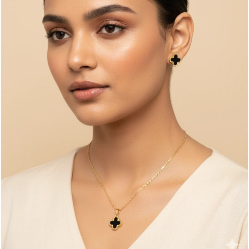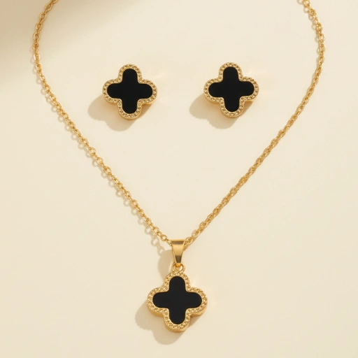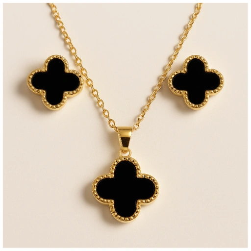 Modern Stainless Steel Necklace and Ear Rings with Black Stone