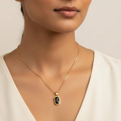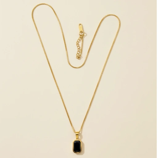 Radiant Stainless Steel Necklace with Black Crystal Stone